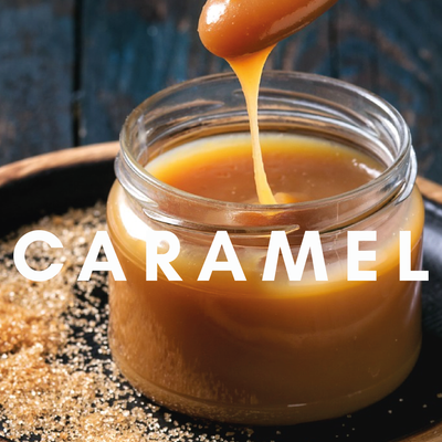 Caramel Flavour E-liquid. Available in Three Flavour Strengths